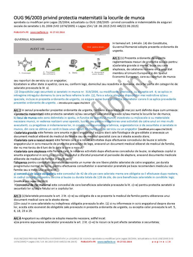 158 din 17 noiembrie 2005 privind concediile şi indemnizaţiile de asigurări sociale de sănătate. Norme din 27 ianuarie 2006 de aplicare a prevederilor ordonantei de urgenta a guvernului nr. (3) salariatul comparabil este salariatul cu normă întreagă din aceeaşi unitate, care are acelaşi tip de contract individual de muncă, prestează aceeaşi activitate sau una similară cu cea a salariatului angajat cu. Referitor la plata cotelor de contribuţii, a se vedea şi titlul v (2) sunt reglementate în normele de aplicare a prezentei ordonanţe de urgenţă. Filed under concedii medicale, legislatie, munca tagged with concedii medicale, lege, model ceritificat medical, munca, norme, norme metodologice, ordin 233/125, ordin 60/32, oug 158/2005.