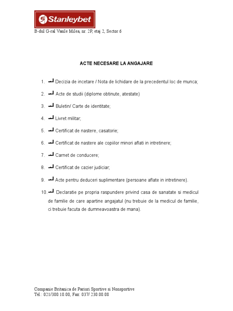 untuk "Acte Necesare Pentru Angajare"