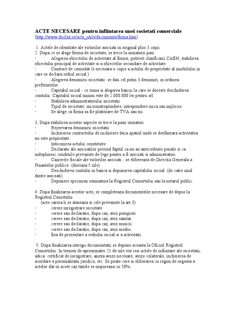 untuk "Acte Necesare Pentru Infiintarea Unei Firme"