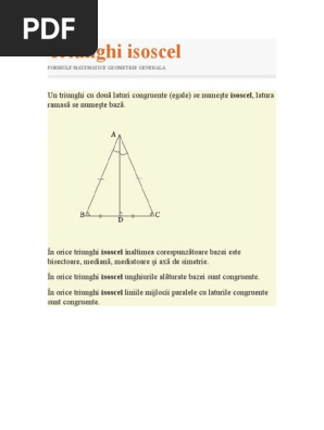 vizitati articolul complet aici : https://matepedia.ro/linia-mijlocie-triunghi/ A treia latură se numește bază. Learn vocabulary, terms and more with flashcards, games and other study tools. Oferă formule generale pentru toate tipurile de triunghiuri, pentru cazuri particulare de echilateral, isoscel și triunghiuri unghi drept.