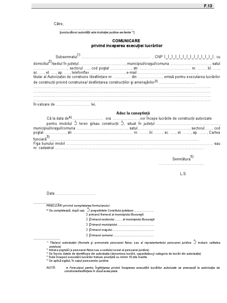98 (1) in scopul cresterii eficientei utilizarii fondurilor, achizitiile de produse, servicii si lucrari in armata romaniei se efectueaza centralizat, la. Formularul pentru lnstiintarea privind inceperea executarii lucrarilor autorizate se anexeaza la autorizatia deconstruire/desfi intare in doua exemplare. Directorul general al agenţiei naţionale de cadastru şi publicitate imobiliară emite prezentul ordin.