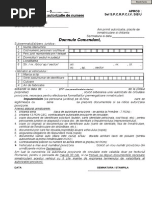 Poliţiştii de frontieră din cadrul sectorului poliției de frontieră foltești efectuează cercetări pe numele unui bărbat care a fost depistat în trafic, la volanul unui autoturism care avea atașată o remorcă cu autorizație de circulație provizorie expirată. Cererea tip din partea solicitantului. Autovehiculele care participa la concursurile automobilistice pe teritoriul romaniei pot fi autorizate provizoriu pentru circulatie pe o perioada de cel mult 30 zile si numai pe traseele mentionate in autorizatie.