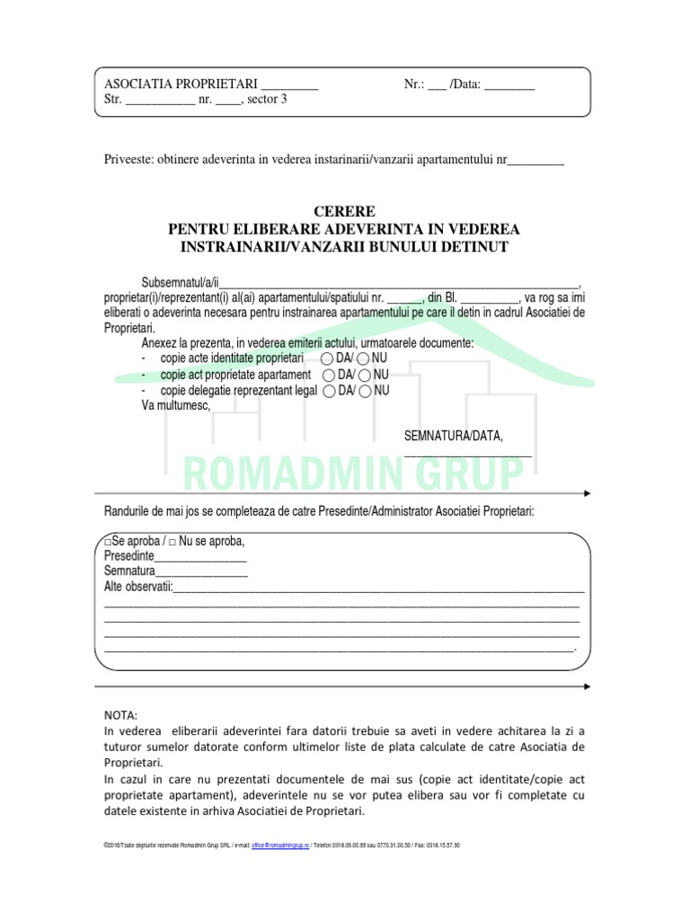 Model Adeverinta Asociatie Proprietari Pentru Vanzare Apartament
