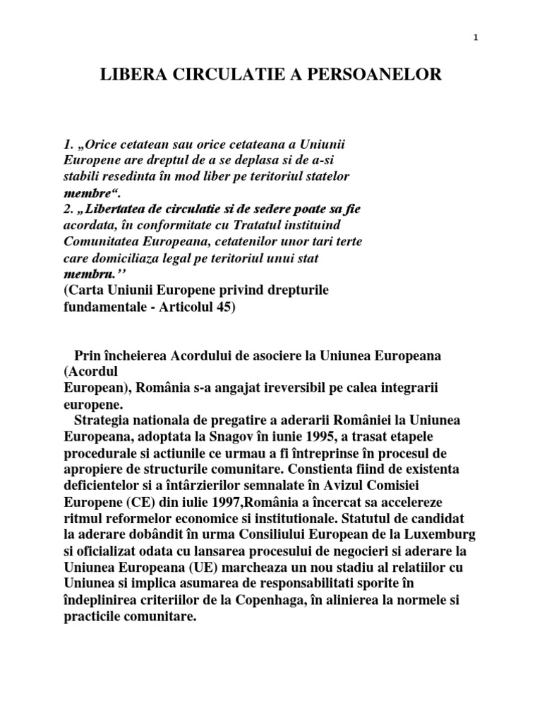 Prin cererea înregistrată sub nr.120/114, la data de 15.01.2010 reclamanta potrivit art. Cu privire la libera circulatie a cetatenilor ue. Comisia a adoptat un raport privind aplicarea directivei 2004/38/ce privind dreptul la liberă circulaţie şi şedere pe teritoriul statelor membre al cetăţenilor uniunii directiva 2004/38 prevede un instrument juridic unic privind libera circulaţie a cetăţenilor uniunii europene şi a membrilor familiilor acestora.